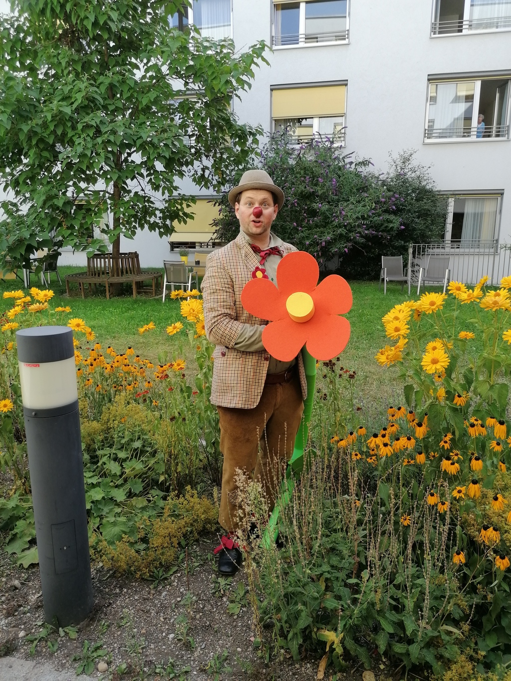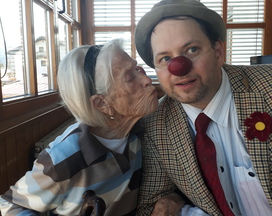 Hilfe wenn man sie am notwendigsten hat. Der Clown versucht abzulenken und aufzuheitern. Einmal wieder herzhaft lachen können!