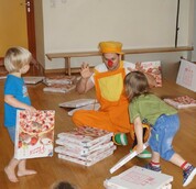Wir laden über Büchereien oder die Volkschulen in Büchereien ein. Dort machen wir eine clowneske Schnitzeljagd. Klassenweise. Ideal für die 1. bis 2. Schulstufe. Eine Mischung aus Buch vorlesen und im Anschluss dazu passender Aktion. Gemeinsam begibt man sich auf eine Reise durch die Bibliothek. Dem Alter angepasste Bücher werden ausgewählt. Es gibt mehr Bücher, als tatsächlich verwendet werden, um auf alles spontan eingehen zu können!